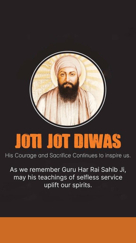 On Joti Jot Diwas, we honor Guru Har Rai Sahib Ji’s divine spirit that guides us toward peace and unity.