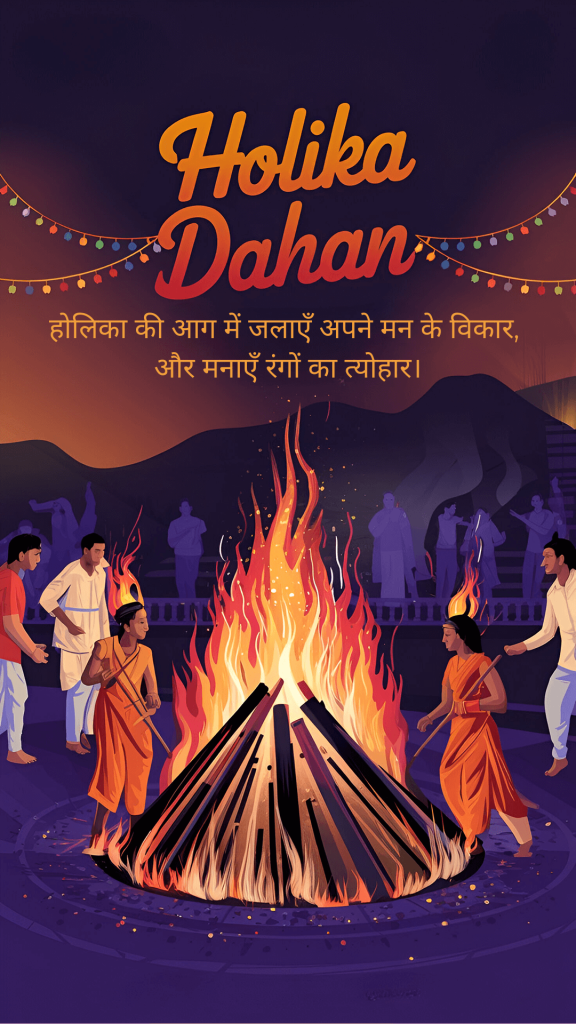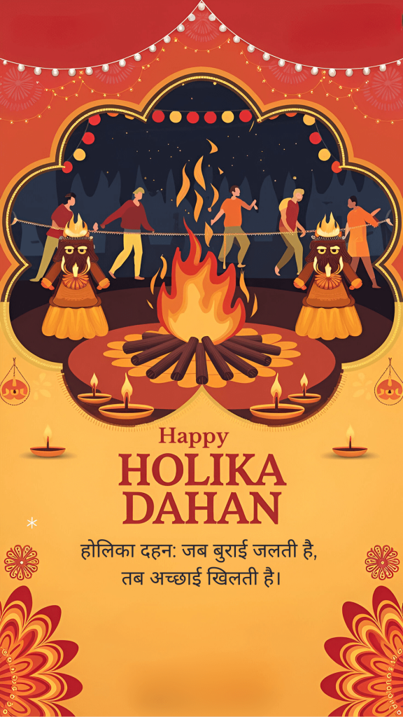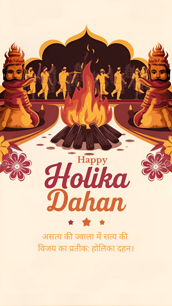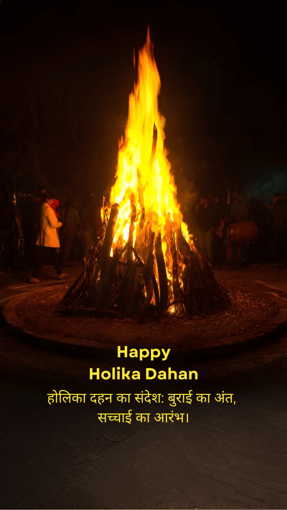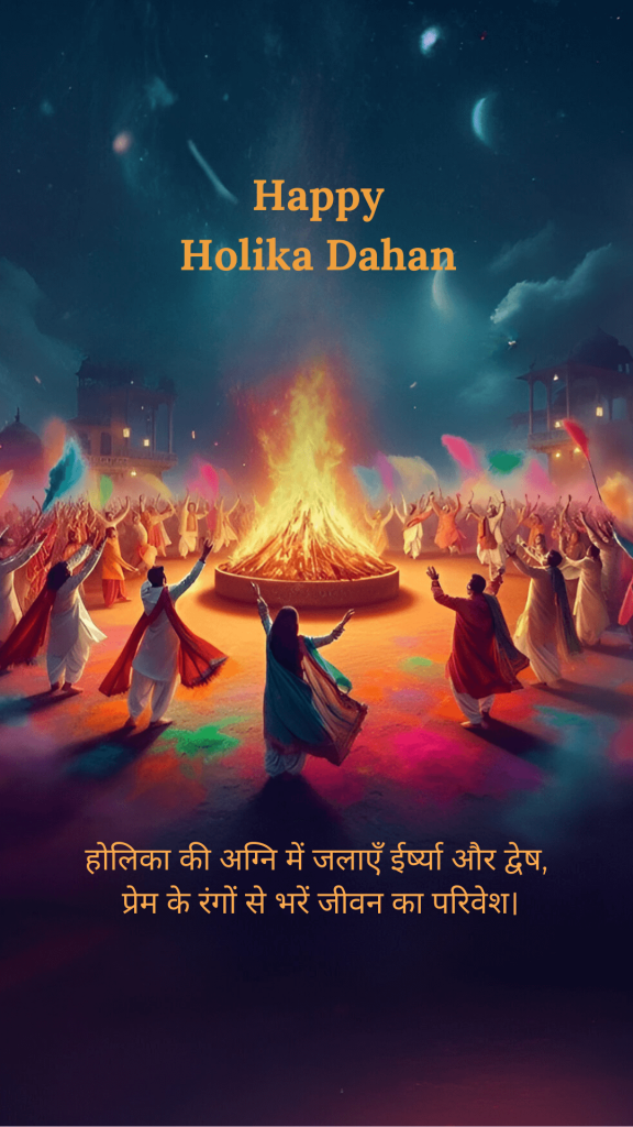 Holika Dahan, rendered Holika Dahanam in Sanskrit or Chotti Holi, is a Hindu festival in which a bonfire is lit to celebrate the burning of the demoness, Holika This ritual is symbolic of victory of good over evil. It precedes Holi, the festival of colours, which celebrates the spring season.